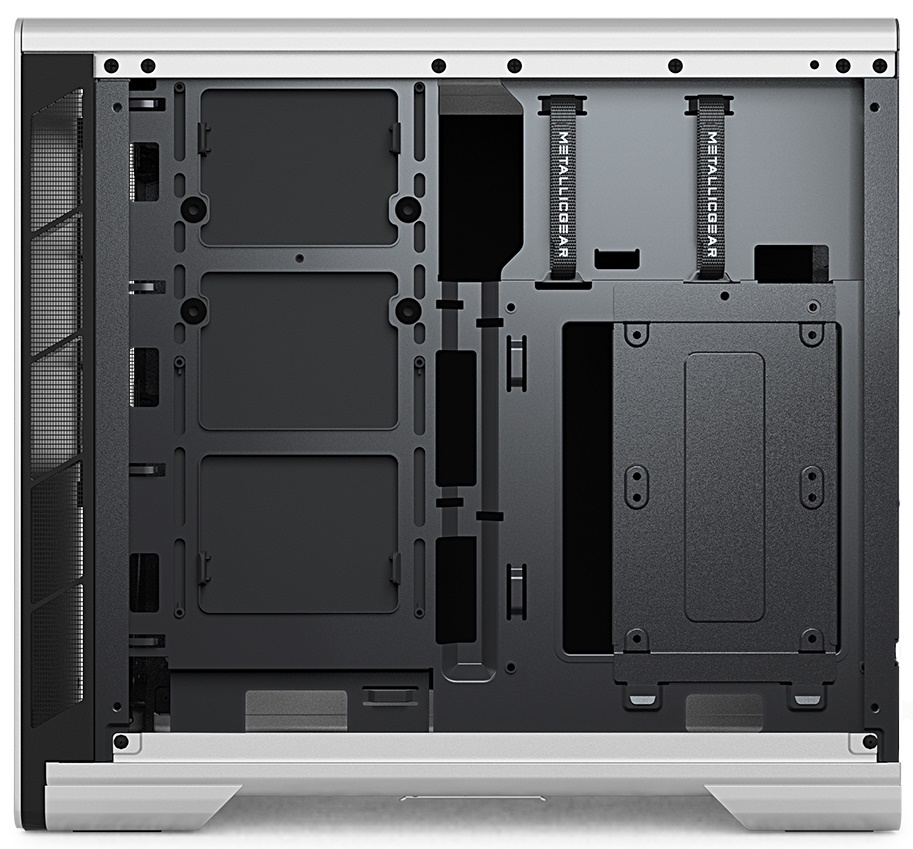 Skříň formátu Mini Tower nabízí dvě 2,5" pozice pro SSD disky a jednu 3,5" pozici pro pevný disk. Na bočním panelu se nachází dva USB 3.0 porty, sluchátkový výstup a audio vstup pro mikrofon. Na přední straně je vybavena 120 mm ventilátorem a umožňuje pohodlné umístění až 280 mm dlouhého výměníku vodního chlazení. RGB podsvícení spolu s průhlednou bočnicí z tvrzeného skla zajišťuje vytříbený design. Ve skříni je dostatek prostoru pro chladič CPU do výšky až 160 mm a grafickou kartu o délce až 345 mm. Skříň je dodávána bez zdroje. Součástí je také sada prachových filtrů.