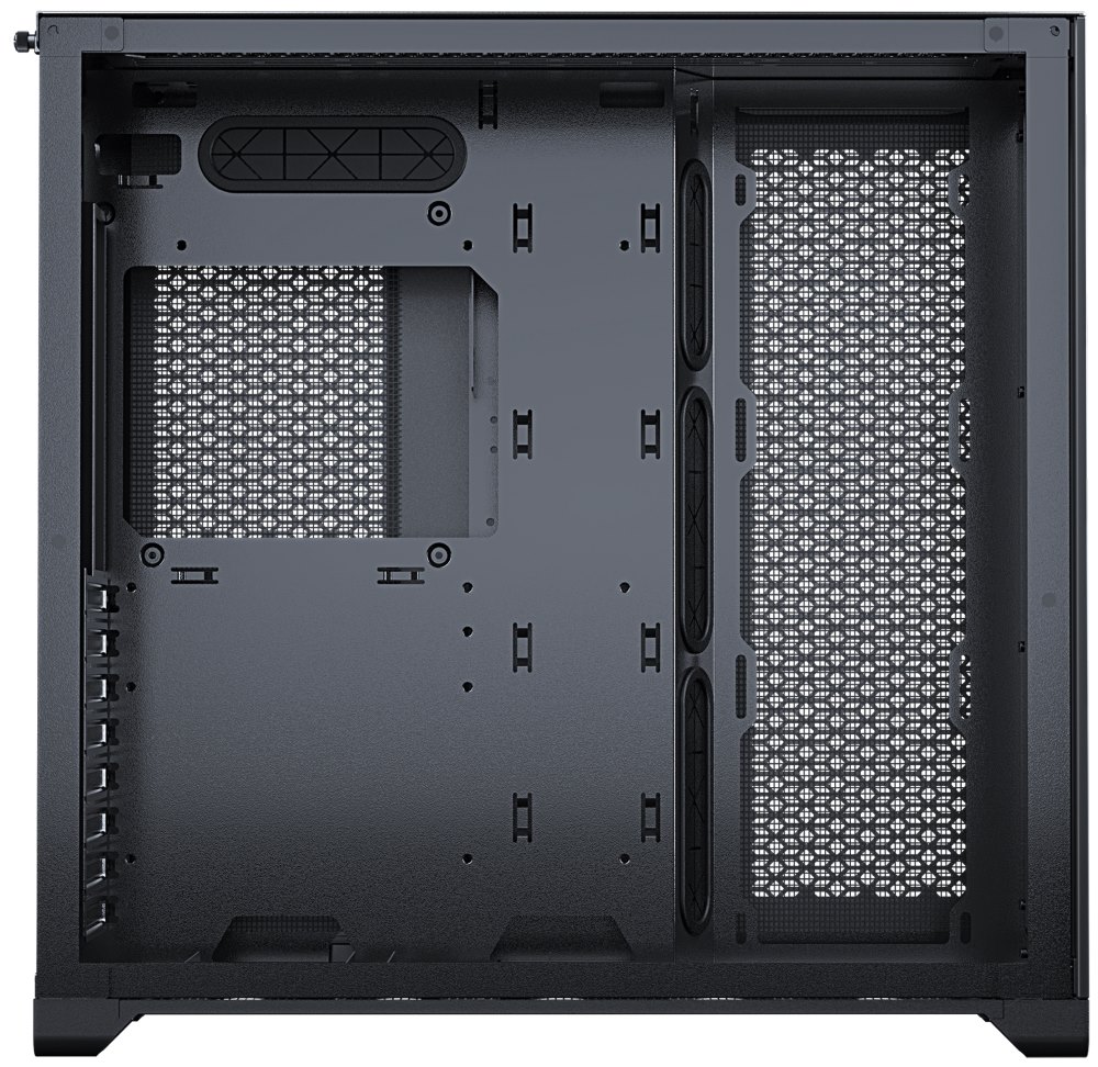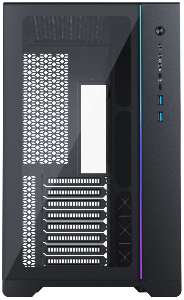 Prostorná skříň formátu Middle Tower nabízí tři 2,5" pozice pro SSD disky a dvě 3,5" pozice pro pevné disky. Na předním panelu se nachází jeden port USB 3.1 Gen2 typu C, dva USB 3.0 porty a kombinovaný port sluchátek a mikrofonu. Skříň je vybavena ARGB podsvícením, které spolu s průhlednou bočnicí a předním panelem zajišťují vytříbený design. Důmyslné řešení umožňuje pohodlné umístění celkem až devíti 120 mm velkých ventilátorů a až 360 mm dlouhého výměníku vodního chlazení na horní, spodní či boční straně. Ve skříni je dostatek prostoru pro chladič CPU do výšky až 148 mm a grafickou kartu o délce až 425 mm. Skříň je dodávána bez zdroje. Součástí je také sada prachových filtrů.