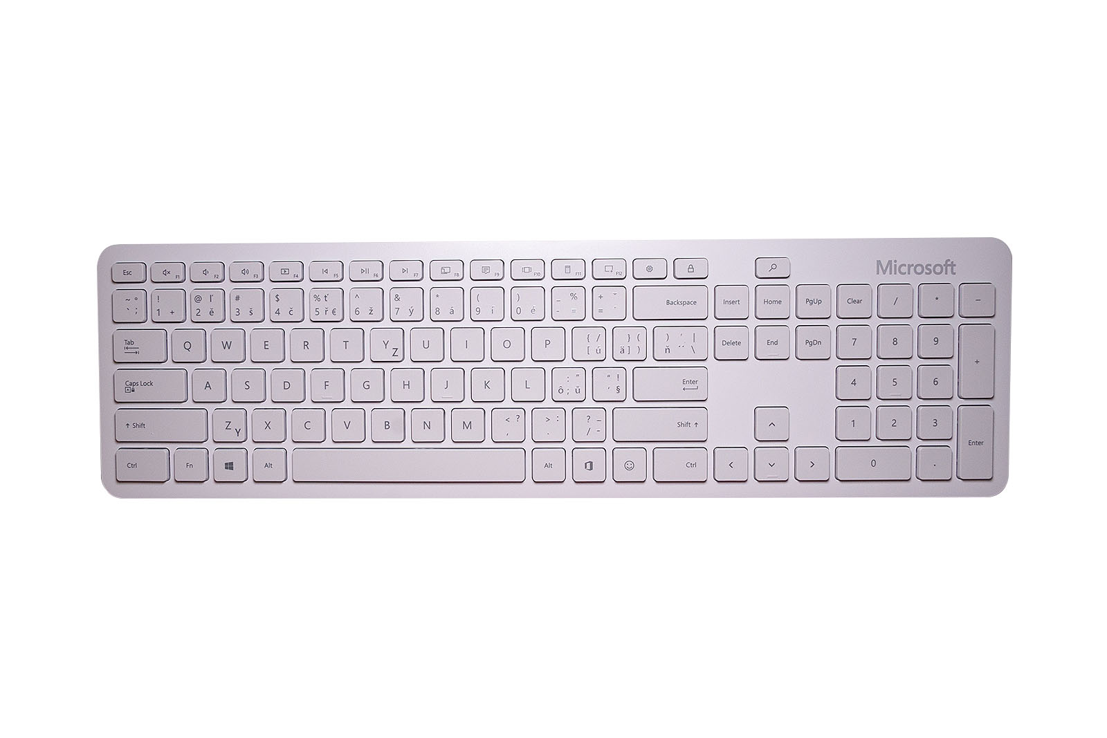 včetně vyhrazené klávesy pro Office, hledání a emoji a snadný