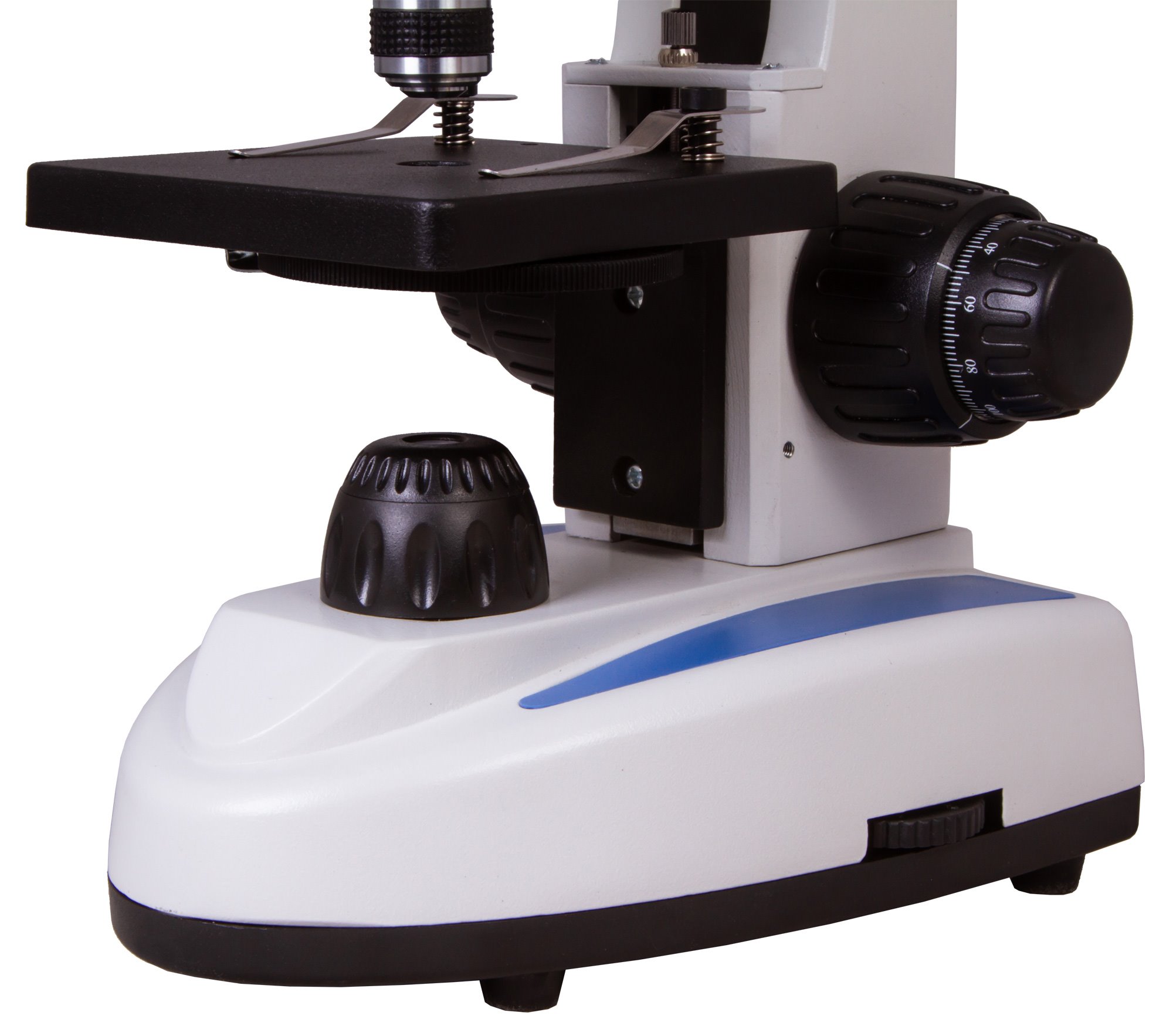 600x. Stolek mikroskopu je vybaven standardními svorkami,