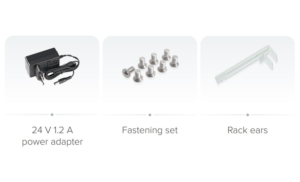 napájecí PoE-in vstup (802.3af/at). Součástí switche je