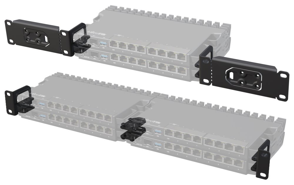 Rack sada 19" (rackové uši) pro montáž až čtyř zařízení RB5009UG+S+IN do 1U racku.