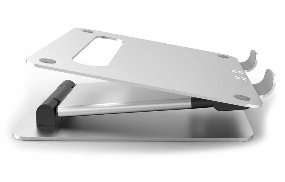 Ergonomický podstavec pro notebooky s úhlopříčkou až 15,6" umožňuje flexibilní nastavení úhlu sklonu a výšky. Pomáhá tak redukovat napětí zad, krku i zápěstí a udržovat správné držení těla. Díky velké ploše základny a protiskluzovému povrchu je zaručena maximální stabilita. Otvor v podstavci zajistí dostatečné proudění vzduchu a zabrání tak přehřívání notebooku.