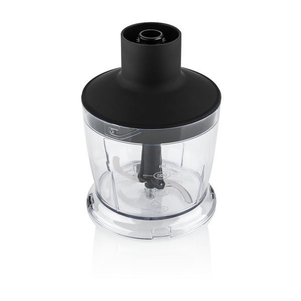 K tyčovému mixéru obdržíte také bohaté příslušenství, jako je například šlehací nástavec s převodovkou pro zajištění optimálních otáček. Dále pracovní nádobu s víkem o objemu 700 ml a speciální nástavec na mačkání brambor a přípravu zeleninových či ovocných pyré. Mezi další výbavu patří také sekáček 500 ml se srpovitým nerezovým nožem a protiskluzovými nožkami nádoby zajišťující stabilitu.