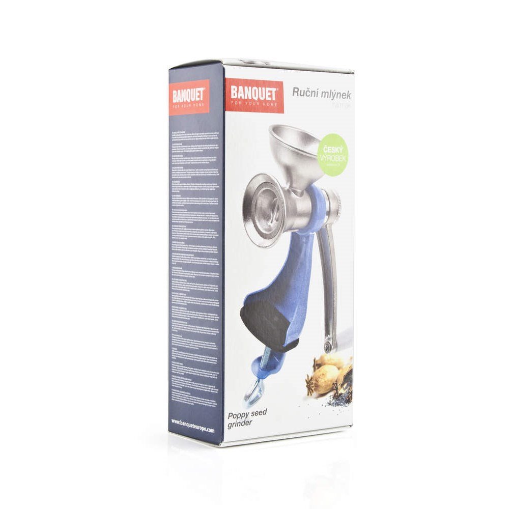 Chystáte se péct koláče? Pořiďte si praktický hliníkový mlýnek na mák značky Banquet. Těleso, drtící mechanismus a otočná klička jsou odolné díky provedení z nerezové oceli s povrchovou úpravou chemickým leštěním. Ostatní díly jsou vyrobené z plastu, pryže nebo hliníku a jsou povrchově upraveny pozinkovým nástřikem nebo práškovou barvou. Mlýnek pohodlně uchytíte na desku s tloušťkou do 32 mm.