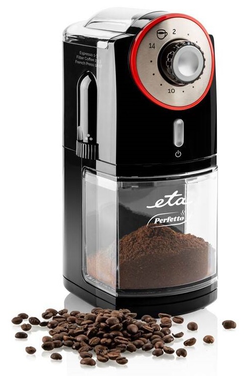 Praktický mlýnek na kávu Perfetto značky ETA s příkonem 100 W vám pomůže nastartovat se do nového dne. Dopřejte si svěží a provoněné ráno se svou oblíbenou kávou, která čerstvě namletá získává ještě lepší chuť a vůni. Množství kávy si můžete sami zvolit. Mlýnek Perfetto zvládne díky násypce, do níž se vejde až 200 g zrnkové kávy, vykouzlit mletou kávu až pro 14 šálků.