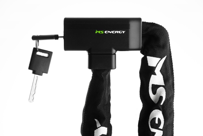 Zámek SL-10 Materiál: slitina zinku, ekologický technický plast ABS Použití: jízdní kola, motocykly, elektrokola Délka: 100 cm, tloušťka řetězu: 8 mm