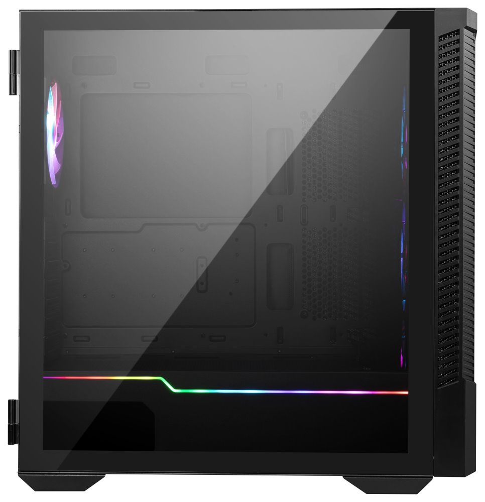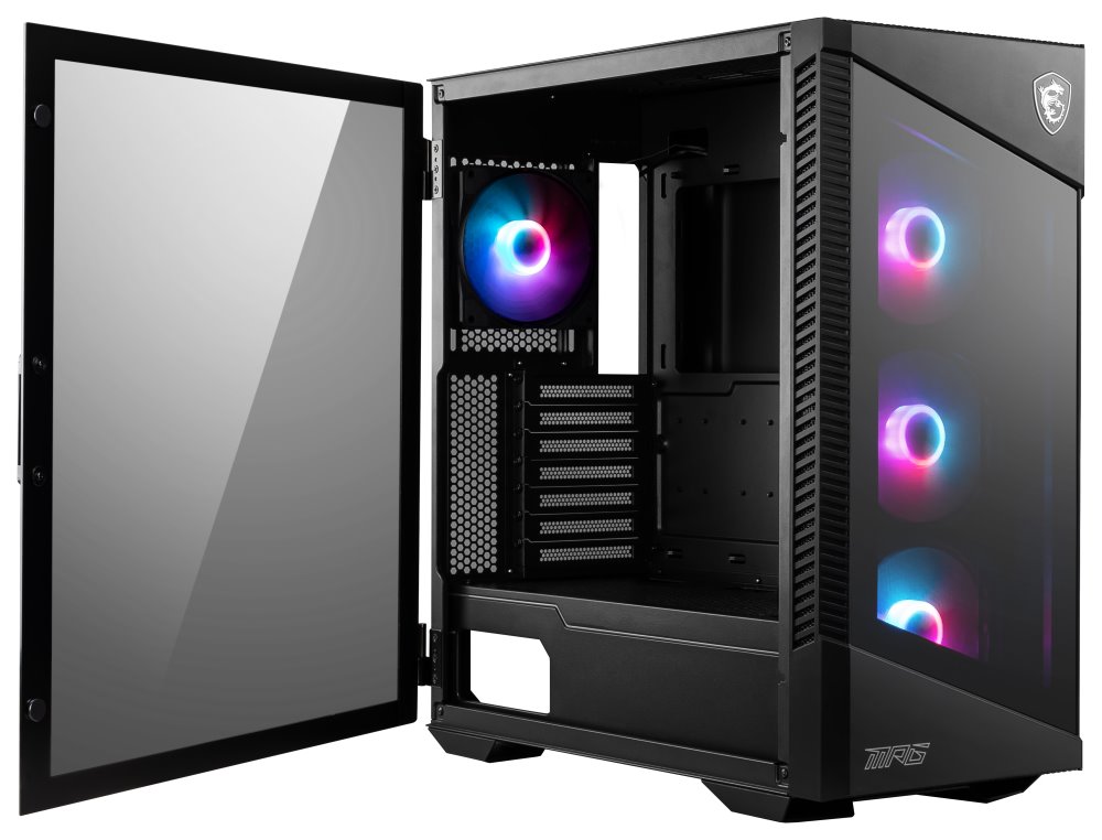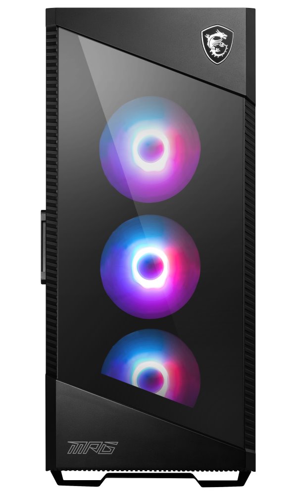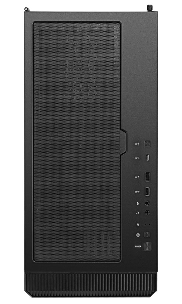 Kvalitní počítačová skříň formátu Middle Tower nabízí dvě 2,5" pozice pro SSD disky a dvě 3,5" pozice pro pevné disky. Skříň je vybavena průhlednou bočnicí a předním panelem. Předinstalovány jsou čtyři 120 mm ventilátory s adresovatelným RGB podsvícením. Rychlou změnu podsvícení umožňuje tlačítko na horním panelu. Zde se také nachází dva porty USB 3.0, jeden port USB typu C, sluchátkový výstup a audio vstup pro mikrofon. Ve skříni je dostatek prostoru pro chladič CPU do výšky až 175 mm a grafickou kartu o délce až 380 mm. Důmyslné řešení umožňuje pohodlné umístění až 360 mm dlouhého výměníku vodního chlazení na přední i horní straně. Potěší také přítomnost prachových filtrů. Skříň je dodávána bez zdroje.