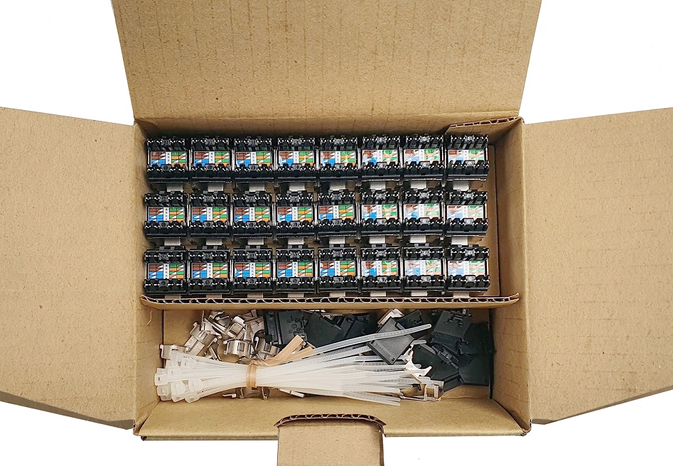 Počítače a kancelář  Síťové prvky  Kabeláž a příslušenství  MULTIPACK 24 ks - rychlozařezávací keystone Solarix CAT6 STP SXKJ-6-STP-BK-NA