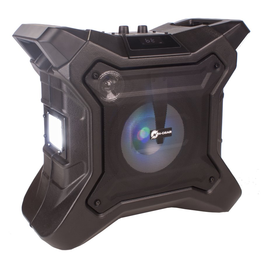 Přenosný voděodolný reproduktor s výkonem 1000 W, 6,5" subwooferem a barevným LED podsvícením. Přehrávat hudbu je možné jak drátově skrze AUX vstup, tak i bezdrátově skrze Bluetooth. Samozřejmostí je také FM rádio a port USB. Pokud si párty chcete opravdu užít, můžete využít vstup pro mikrofon. Díky vestavěné baterii lze přehrávat hudbu až 15 hodin bez nutnosti připojení na elektrickou síť. Součástí balení je drátový mikrofon.