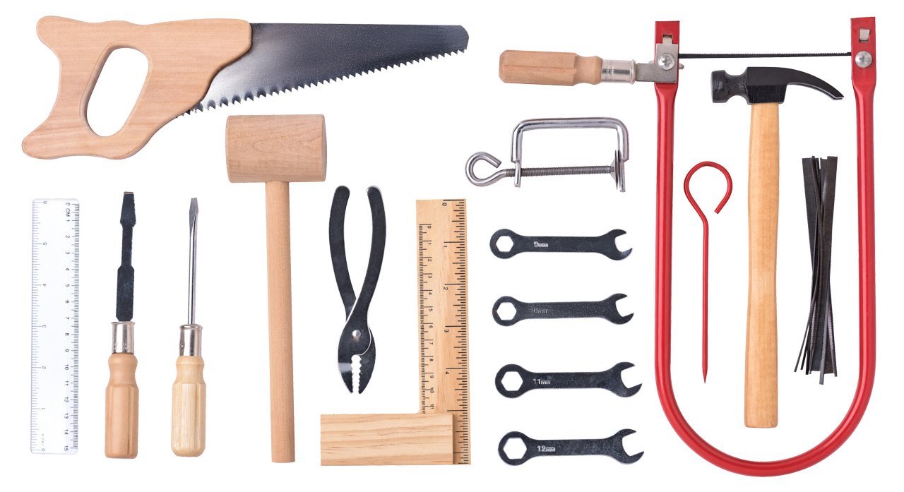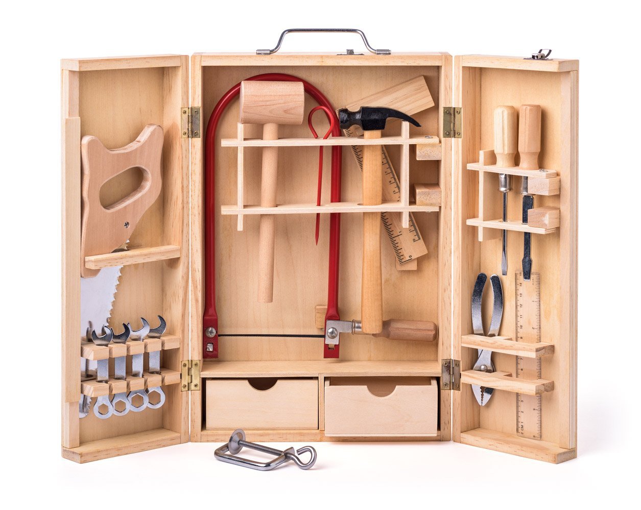 Kovové nářadí Woody je reálnou kopií skutečného nářadí pro dospělé. Praktický dřevěný kufřík s panty, v němž je nářadí umístěno, je opatřený kovovými přezkami a uchem pro snadné přenášení. Uvnitř kufříku jsou instalovány západky a speciální otvory, které zajistí jednotlivé kusy nářadí tak, aby při manipulaci nevypadly. Sada obsahuje 26 ks nářadí.