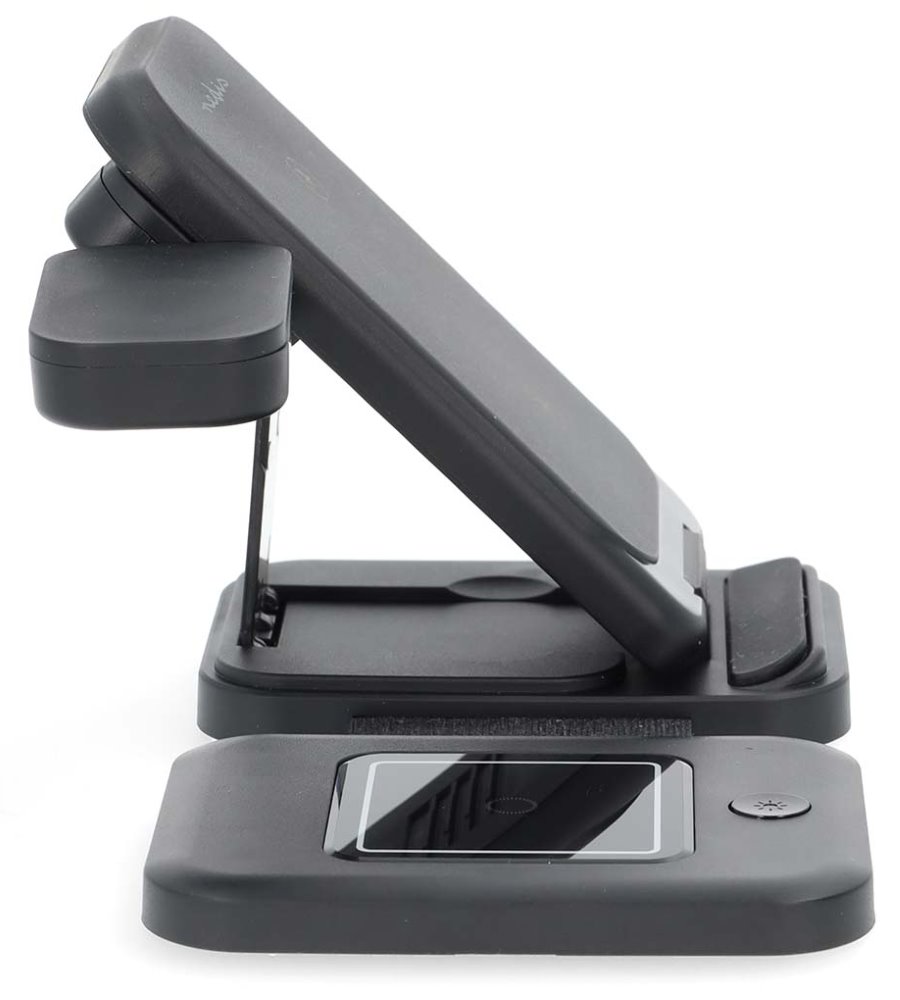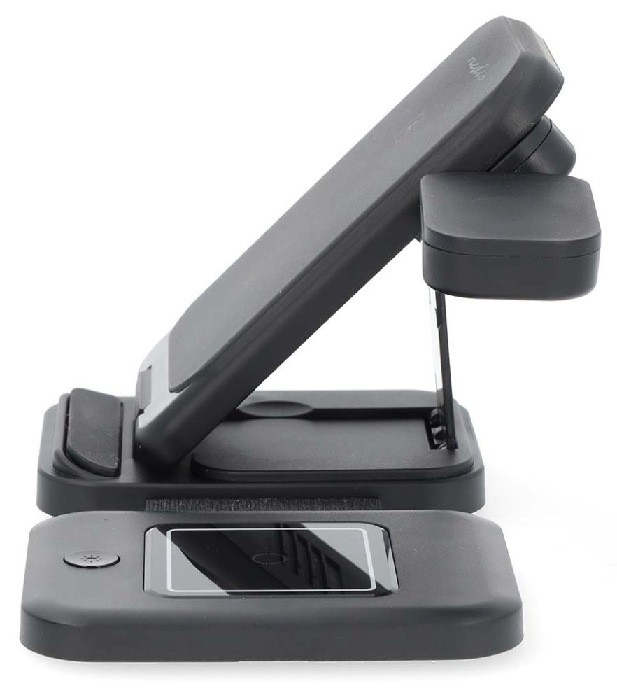 Bezdrátová nabíjecí stanice 3 v 1 poslouží jako praktický stojánek a zároveň spolehlivě dobije váš telefon, hodinky Apple či Samsung nebo sluchátka do uší TWS výkonem až 15 W. Díky technice nabíjení se dvěma cívkami dokáže bez problémů nabíjet i flipové smartphony. Samozřejmostí je LED indikace probíhajícího nabíjení. Stabilní umístění je zaručeno měkkými gumovými nožičkami, které zajišťují, že zůstane bezpečně na svém místě. Samotnou stanici můžete nabíjet pomocí přiloženého kabelu USB-A na USB-C.
