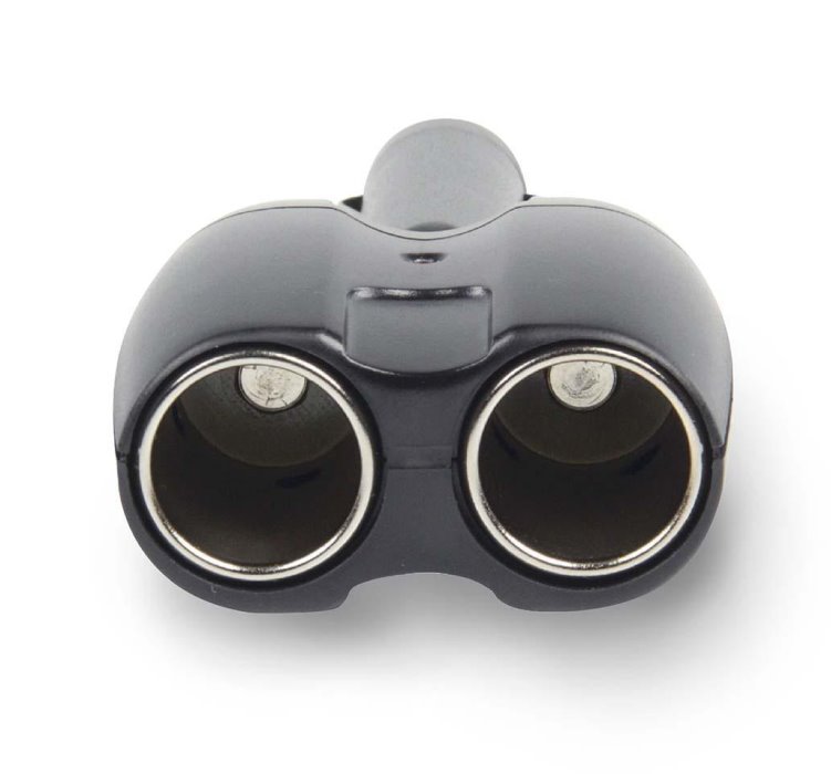 Napájecí kloubová rozdvojka pro 12V autozásuvku umožňuje připojit zároveň dva 12V spotřebiče.