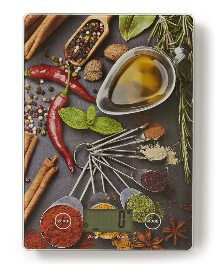 Vysoce přesná kuchyňská váha s odolným skleněným povrchem a designovým potiskem. Váha má zabudovaný LCD displej a dotykové tlačítka, proto je její ovládání velice snadné. Dále disponuje indikátorem nízkého stavu baterie, indikátorem přetížení a automatickým vypnutím. Pro velice přesné vážení na 1 g je vybavena tenzometrickými snímači. Maximální nosnost váhy činí 5 kg a zobrazení hmotnosti můžete volit v kg nebo lb. Baterie je součástí balení.