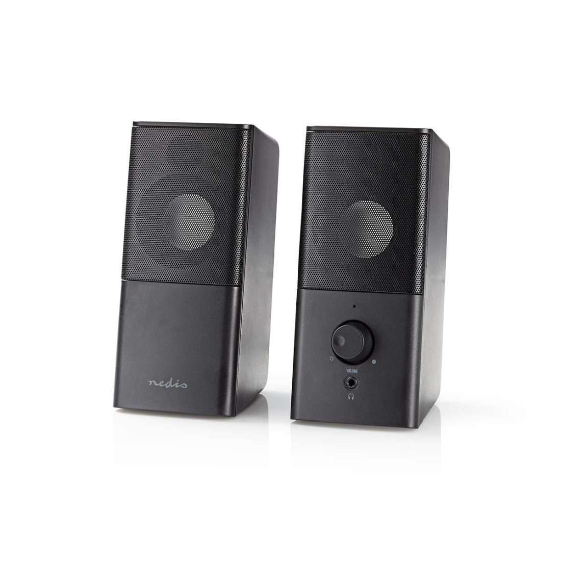 stereofonní Nedis® Herní Reproduktory. Jednotlivé kompaktní reproduktory přináší hlasitost o výkonu 9 W,