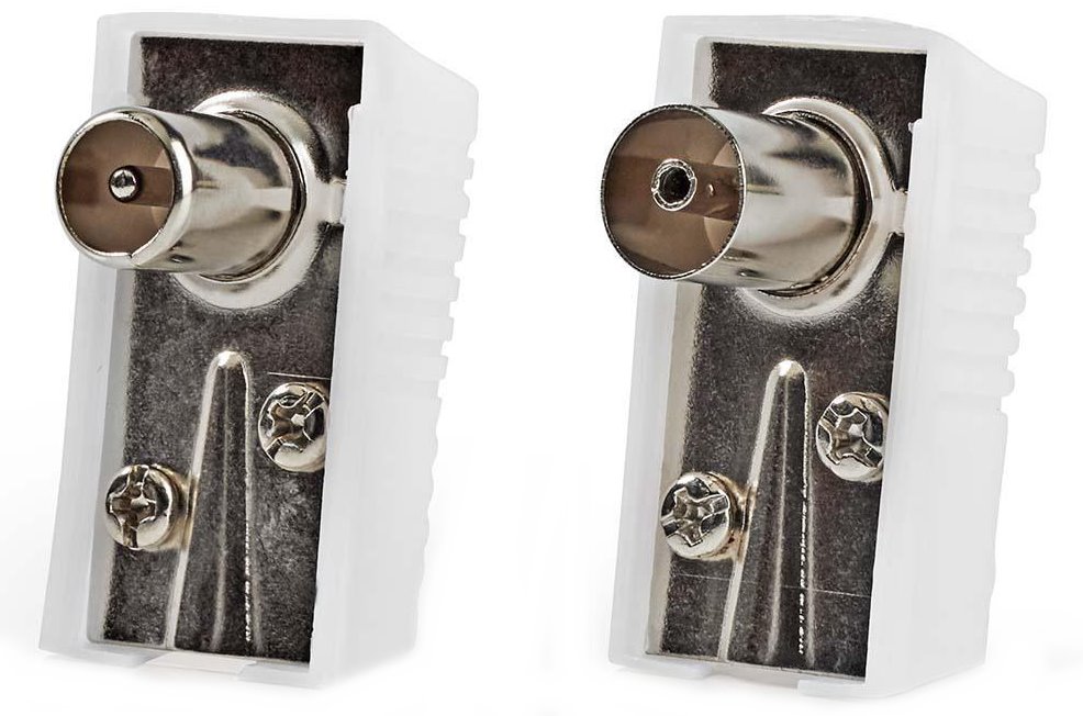 Úhlové koaxiální konektory pro maximálně efektivní využití prostoru, zástrčka - zásuvka. Lomený konektor pro ochranu vodičů v kabelu před zlomením.