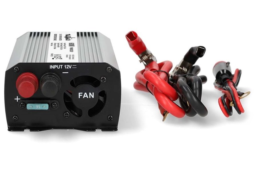 Měnič napětí s výkonem 600 W a modifikovanou sinusoidou je ideální řešení pro napájení nejrůznějších elektrických spotřebičů určených pro síťové napájení, jako například notebooků, chladicích boxů apod. Vstupní napětí měniče je 12 V DC, výstupní napětí 230 V AC a účinnost 85 %. Takto můžete v nákladních automobilech, lodích či obytných vozech používat domácí spotřebiče, aniž byste museli investovat do speciálního vybavení pracujícího s napětím 12 V. Není vhodný pro napájení elektroniky citlivé na tvar vstupního napětí. Měnič je vybaven napájecí zásuvkou se zemnicím kolíkem (typ E) a jedním USB portem s výstupním napětím 5 V DC. Samozřejmostí je ochrana proti přehřátí, přetížení, zkratu, přepólování (pojistka), podpětí a přepětí. Součástí balení jsou kabely pro zapojení do automobilové zásuvky a bateriovými svorkami pro připojení k baterii.