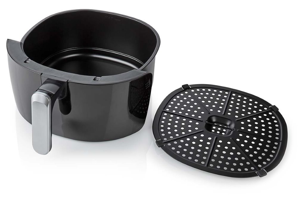 Multifunkční horkovzdušná fritéza s výkonem 1500 W disponuje 12 přednastavenými programy pro přípravu jídel jako jsou hranolky, různé druhy masa, nebo zelenina. Mimořádně velká kapacita 4,6 litru umožňuje současně usmažit například až 1,2 kg hranolků. Technologie vysokorychlostního proudění horkého vzduchu rychle usmaží jídlo s použitím téměř nulového množství tuku. Potěší také časovač až na 60 minut a přehledný digitální displej s dotykovými tlačítky, díky kterému můžete snadno nastavit teplotu od 80 do 200 °C.