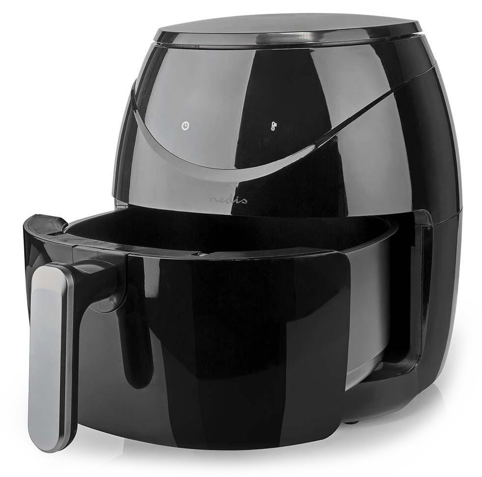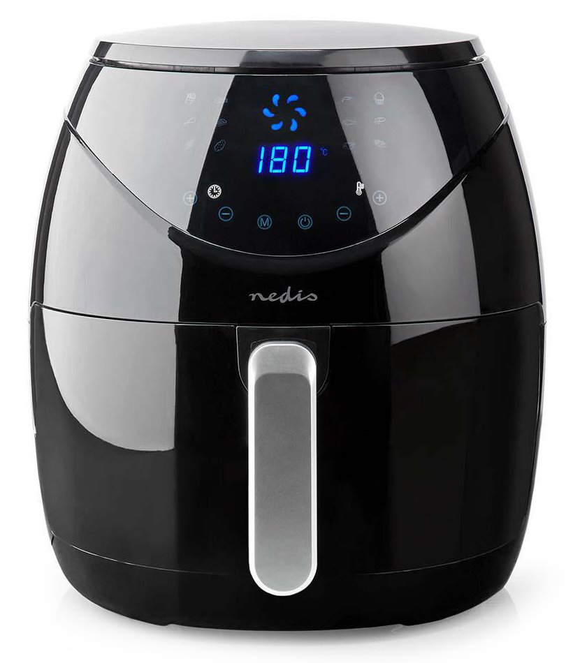 Multifunkční horkovzdušná fritéza s výkonem 1800 W disponuje 12 přednastavenými programy pro přípravu jídel jako jsou hranolky, různé druhy masa, nebo zelenina. Mimořádně velká kapacita 6,5 litru umožňuje současně usmažit například až 1,4 kg hranolků, nebo jedno celé kuře. Technologie vysokorychlostního proudění horkého vzduchu rychle usmaží jídlo s použitím téměř nulového množství tuku. Potěší také časovač až na 60 minut a přehledný digitální displej s dotykovými tlačítky, díky kterému můžete snadno nastavit teplotu od 80 do 200 °C.