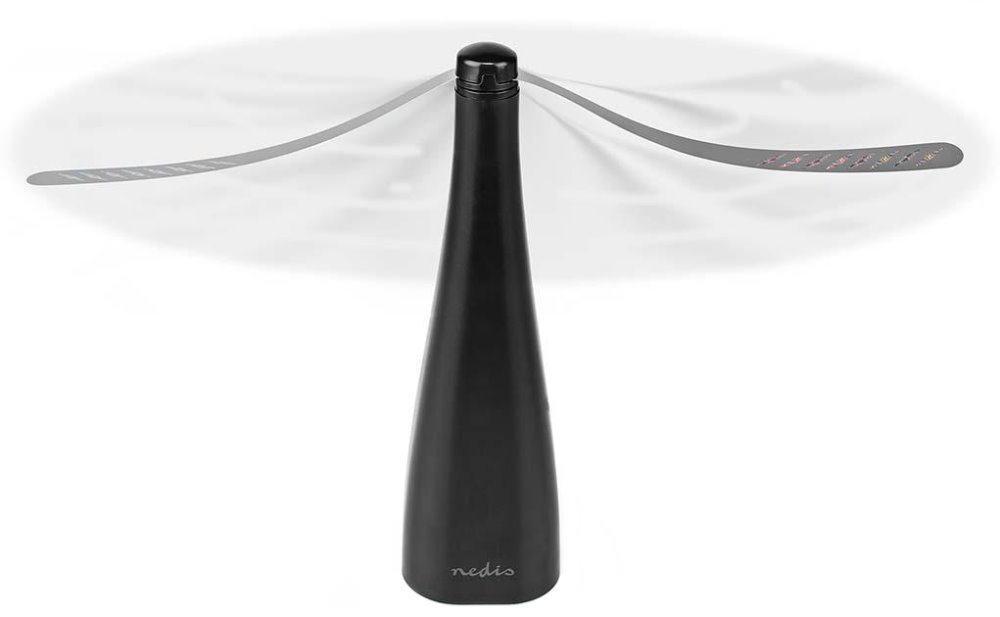 Odpuzovač hmyzu udrží dotěrný létající hmyz z dosahu, a vy si tak můžete užít příjemné venkovní setkání s přáteli a rodinou nebo nerušené povídání u jídla. Proud vzduchu vyvolaný měkkými čepelemi s reflexními pruhy spolehlivě odpudí mouchy a jiný létající hmyz od vašeho talíře. Odpuzovač nevyužívá žádné chemické látky, takže je ekologický a bezpečný pro lidi i životní prostředí. Dále je vybaven automatickým zastavením při kontaktu s čepelí a praktickým háčkem pro zavěšení. Napájení mají na starost dvě AA baterie.