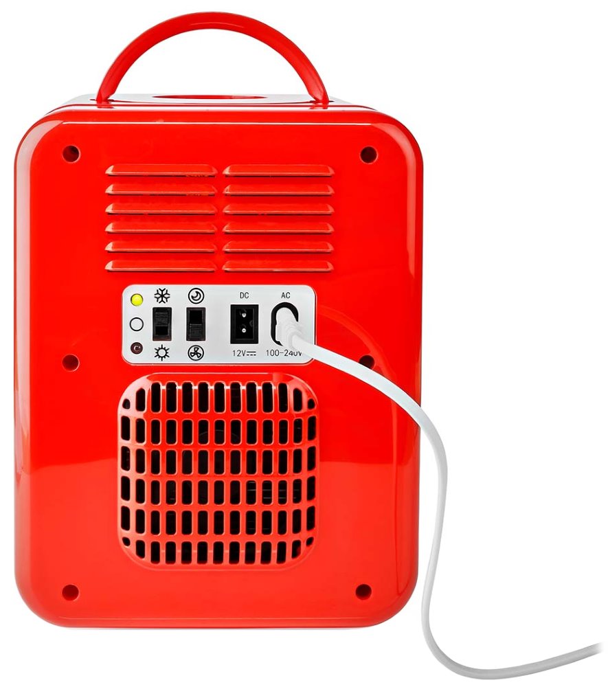 Praktická přenosná chladnička s objemem 4 l určená k udržování jídla, nápojů nebo léků v chladu. Kromě chlazení na teplotu 8 až 18 °C (v závislosti na okolní teplotě) nabízí také funkci ohřevu na teplotu až 65 °C. Pohodlně do ní lze umístit například až 6 plechovek s nápoji a díky vyjímatelné polici snadno pojme také malé potraviny, jako jsou jogurty či ovoce. Kompaktní a prostorově úsporný design umožňuje umístit chladničku do menších místností, například pracovny, kanceláře nebo dílny. Součástí balení jsou dva napájecí kabely pro standardní elektrické zásuvky i pro 12 V zásuvky v automobilech. Pro snadné přenášení je vybavena rukojetí.