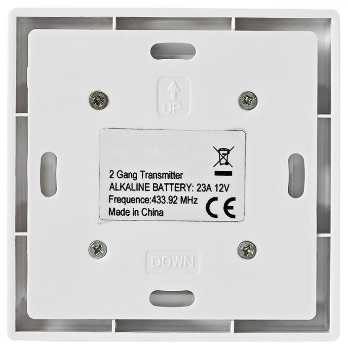 Chytrý vypínač se dvěma tlačítky pro dálkové ovládání světelných zdrojů a dalších zařízení. Pro jeden kanál je možné zaregistrovat více přijímačů, což umožňuje zapínat a vypínat několik zařízení stisknutím jednoho tlačítka. Funguje téměř se všemi stávajícími systémy s frekvencí 433,92 MHz bez ohledu na značku.