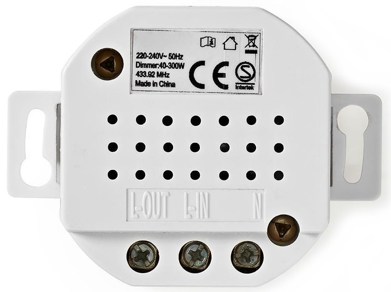Vestavěný přepínač určený k zapojení do elektrického vedení pro dálkové ovládání světelných zdrojů. Přepínač kromě vypnutí a zapnutí umožňuje také stmívání v rozsahu 20 % až 80 %. Je navržený pro 70 mm instalační krabičky evropského standardu a disponuje vestavnou hloubkou pouhých 31,5 mm. Funguje téměř se všemi stávajícími systémy s frekvencí 433,92 MHz bez ohledu na značku. Spínač není kompatibilní se světly LED.