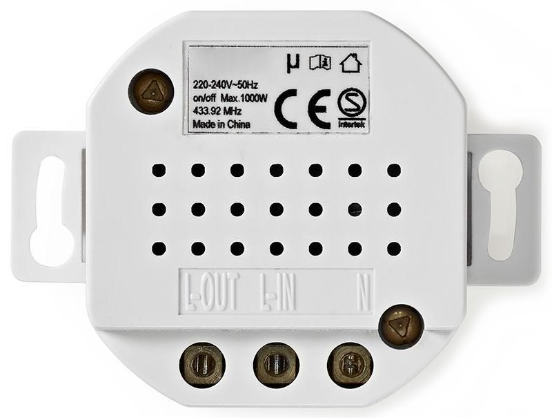 Vestavěný přepínač určený k zapojení do elektrického vedení pro dálkové ovládání světelných zdrojů. Je navržený pro 70 mm instalační krabičky evropského standardu a disponuje vestavnou hloubkou pouhých 31,5 mm. Funguje téměř se všemi stávajícími systémy s frekvencí 433,92 MHz bez ohledu na značku. Spínač není kompatibilní se světly LED.