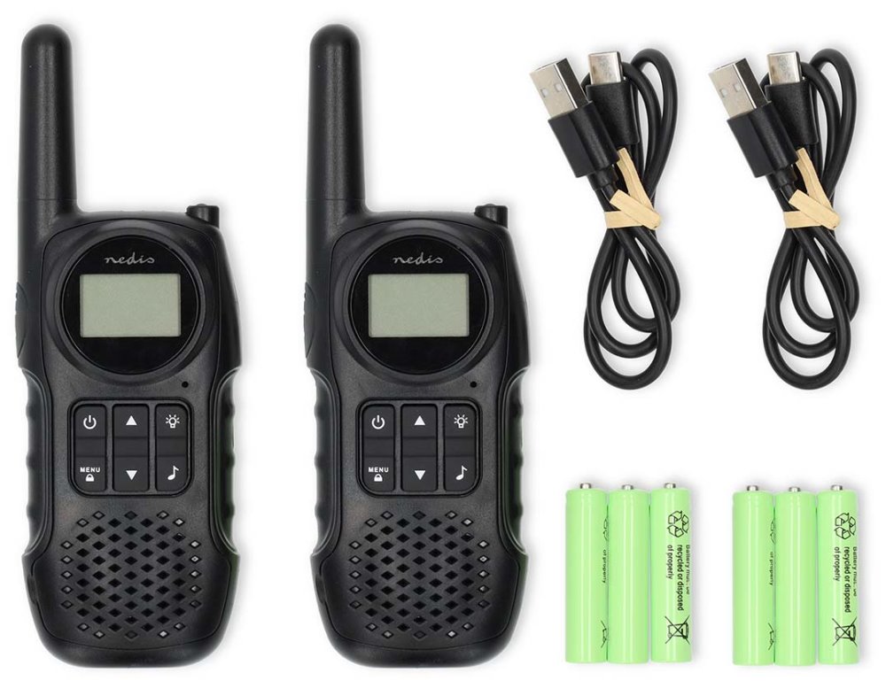 Kompaktní vysílačky, založené na technologii s frekvencí 446 MHz, které vám umožní zůstat v kontaktu s přáteli až do vzdálenosti 10 km na otevřeném prostranství. Díky jasnému LED osvětlení se skvěle hodí na túry, kempování nebo na jakékoli jiné indoorové i outdoorové aktivity. Jejich předností je podpora funkce VOX, tj. přenosu aktivovaného hlasem. Jakmile začnete mluvit, vysílačka se automaticky zapne - je tak perfektní pro handsfree komunikaci. 8 kanálů a 99 kódů CTCSS (subkanálů) pro každý kanál zabraňuje rušení signálu od ostatních dvousměrných rádiových zařízení. Zajisté potěší také výstup pro sluchátka či přehledný 1,1" displej. Šest nabíjecích baterií typu AAA (součástí balení) udrží vysílačky v chodu až 3 hodiny při nepřetržitém hovoru. Baterie je možné jednoduše nabíjet pomocí USB-C portů.