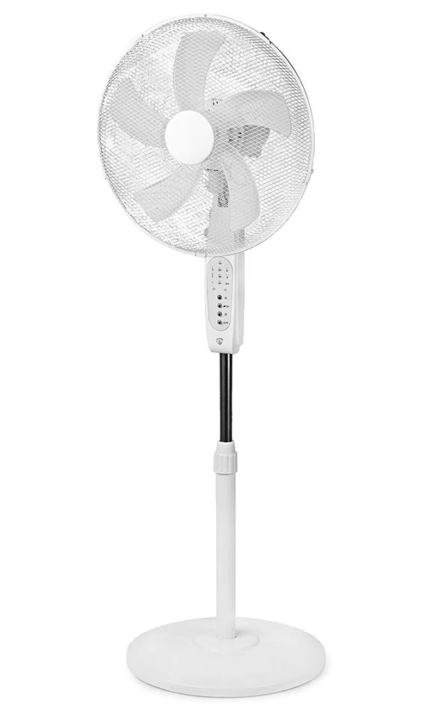 Chytrý stojanový ventilátor s výkonem 45 W, funkcí oscilace, třemi rychlostními stupni a časovačem. Výška ventilátoru je nastavitelná v rozsahu 105 - 130 cm. Po propojení s aplikací Nedis SmartLife prostřednictvím Wi-Fi je možné ventilátor ovládat skrze mobilní telefon. Kromě zapnutí a vypnutí lze v aplikaci nastavit také rychlost, časovač, otáčení či celý harmonogram. Ventilátor rovněž nabízí režim spánku, při kterém postupně snižuje rychlost až do úplného vypnutí. Zajisté potěší podpora hlasových asistentů Google Home a Amazon Alexa.