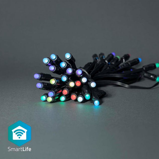 Tento plnobarevný Nedis® chytrý Wi-Fi světelný řetěz RGB+ o délce