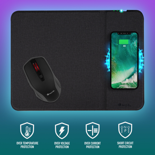 Součástí balení je také podložka s optimalizovaným povrchem pro všechny typy myší nabízející protiskluzovou základnu pro maximální stabilitu. Její předností je vestavěná bezdrátová nabíječka pro smartphony. Nepotřebujete žádný další kabel, jednoduše stačí umístit smartphone, který je Qi kompatibilní, např. iPhone 8, X, Samsung S6, S7 a S9, na pravou stranu podložky a nabíjení automaticky začne. Podložka podporuje režim nabíjení 5 W, 7,5 W a 10 W.