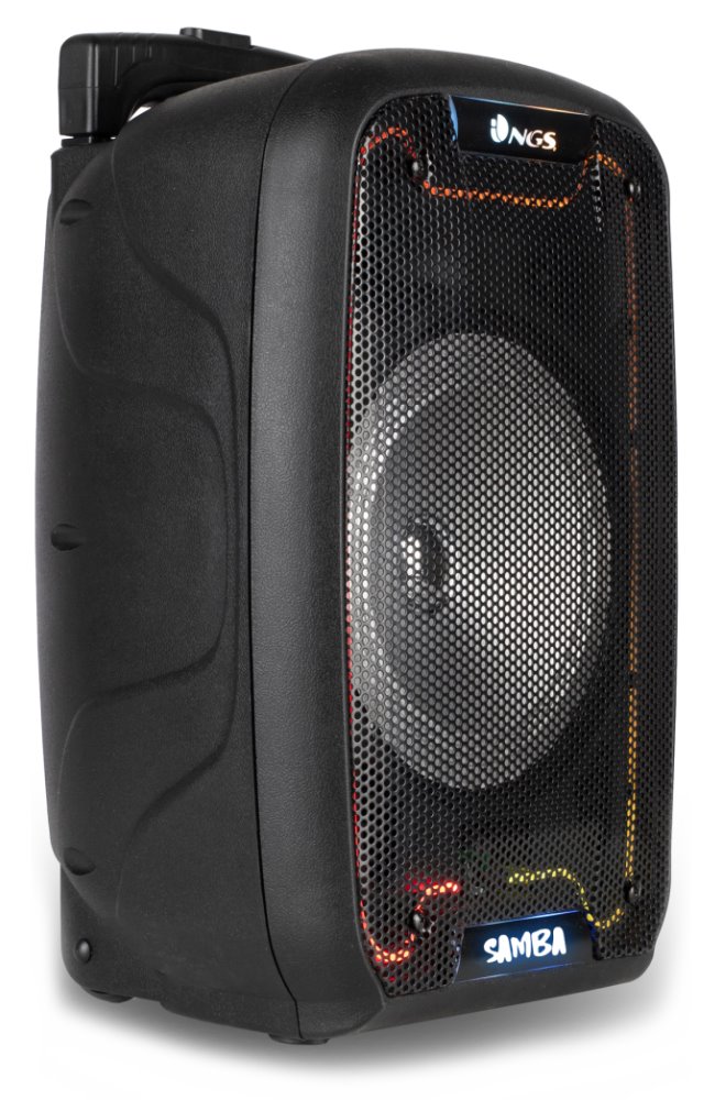 Přenosný reproduktor s výkonem 30 W, 8" subwooferem a barevným LED podsvícením. Přehrávat hudbu je možné jak drátově skrze AUX vstup, tak i bezdrátově skrze Bluetooth. Samozřejmostí je port USB a microSD slot pro přehrávání z flashdisku či paměťové karty. Pokud si párty chcete opravdu užít, můžete využít také vstup pro mikrofon. Díky vestavěné baterii lze přehrávat hudbu až 3 hodiny bez nutnosti připojení na elektrickou síť. Součástí balení je drátový mikrofon.