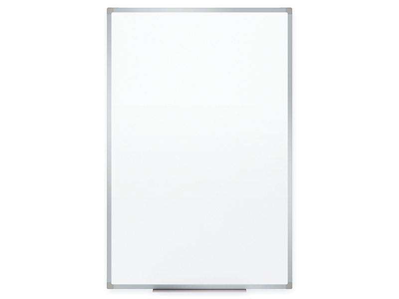 Magnetická tabule s bílým lakovaným povrchem Rozměr 120 x 90 cm Pro popis stíratelným fixem Odkládací lišta na fix Bezúdržbová - mazání za sucha Stylový hliníkový rám Šířka rámu 1,7 cm Světle šedé plastové rohy sladěné s rámem tabule Zadní stěna - dřevotříska Montážní kit součástí balení Možnost montáže i ve vertikálním směru