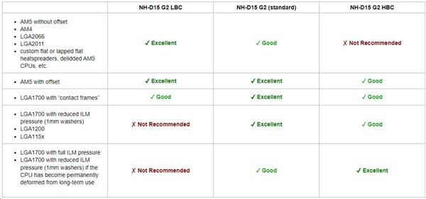 Model NH-D15 G2, který posouvá optimalizaci pro jednotlivé platformy na novou úroveň, je k dispozici v běžné standardní verzi a ve dvou specializovaných variantách: