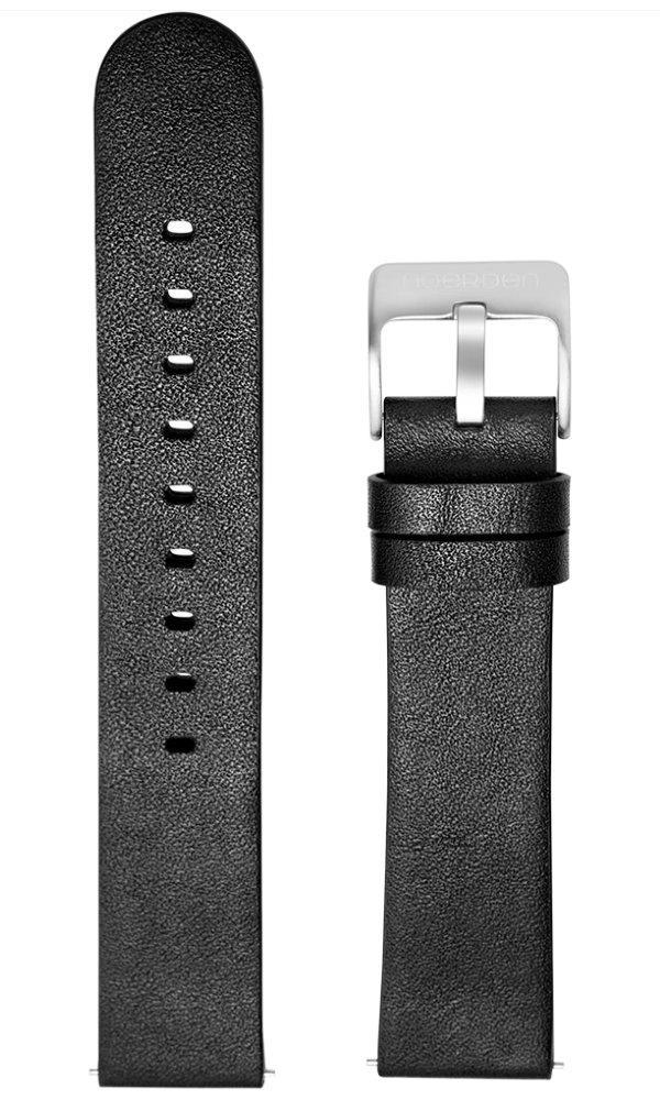 Náhradní černý kožený řemínek s kovovou přezkou a šířkou 20 mm.