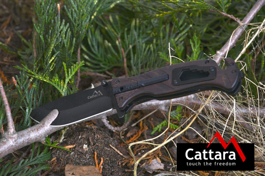 Skládací 21,7cm kapesní nůž Cattara Black Blade je nezbytnou součástí výbavy pro camping, rybaření a většinu outdoorových aktivit. Čepel nože je zhotovena z martenzitické oceli SS420, délky 9 cm o síle 2,8 mm. Tato ocel je vysoce kvalitní a dosahuje vynikající tvrdosti HRC 50-52 a je obzvláště vhodná do nepříznivého prostředí, kde exceluje svou odolností vůči korozi a vnějším vlivům.