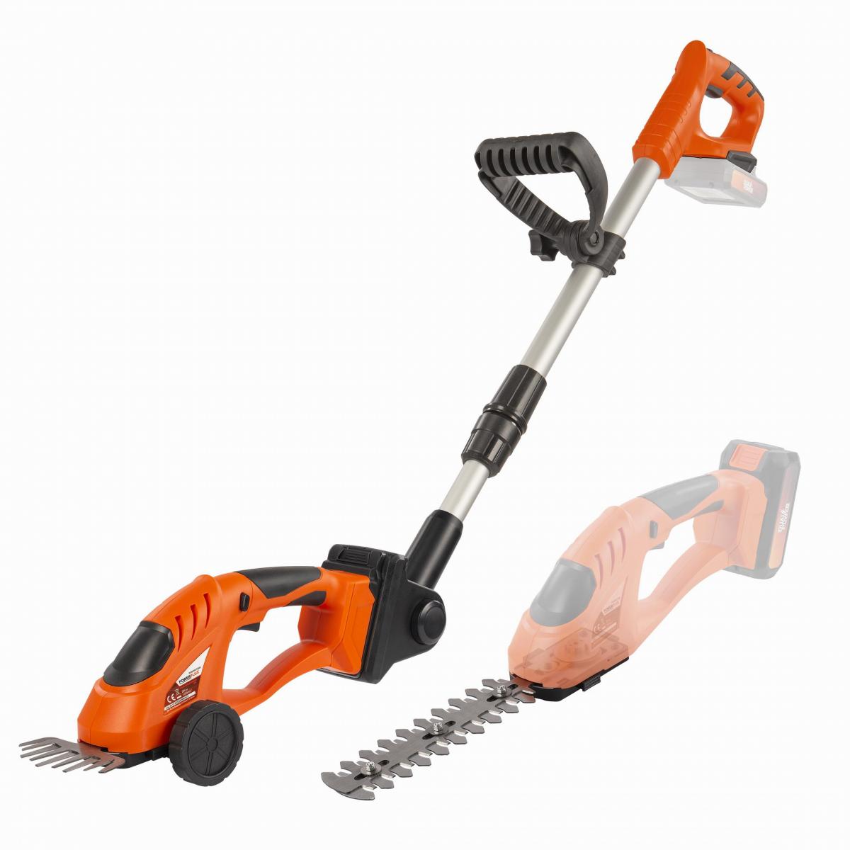 Součástí nůžek jsou 2 čepele – nůž na sekání trávy a nůž na prořezávání keřů a živých plotů. Snadno je k přístroji připojíte. Stisknete tlačítka po stranách nože a kliknutím ho zajistíte. Nepotřebujete k tomu ani žádné nářadí.