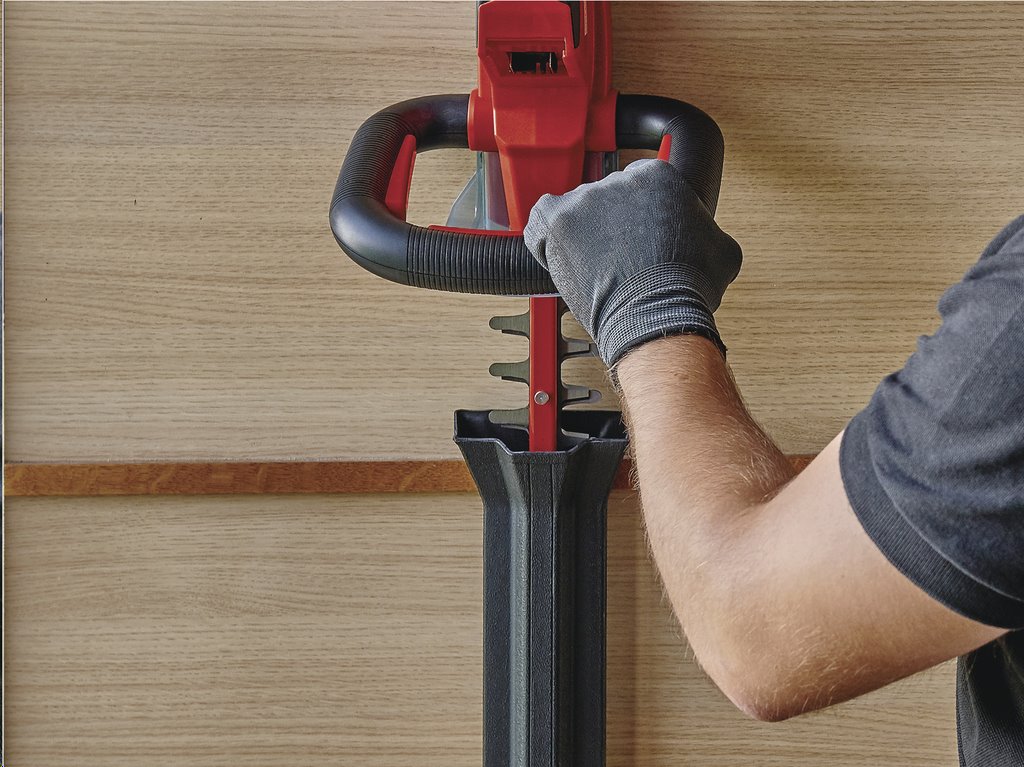 Hliníkový kryt chrání nože a robustní kryt nože poskytuje ochranu během skladování a lze jej také použít pro bezpečnou přepravu. Součástí dodávky je také ochrana proti nárazu s držákem pro montáž na zeď. Tento produkt je dodáván bez baterie a nabíječky. Pro provoz akumulátorového plotostřihu Einhell je nutná baterie X-Change 18 V Power.