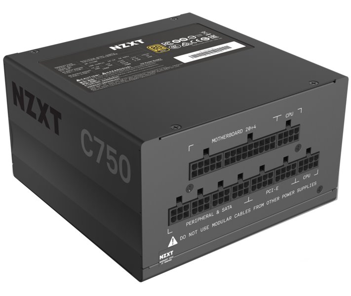 Napájecí zdroj o výkonu 750 W je osazen tichým, 120 mm velkým ventilátorem. Modulární kabeláž ušetří cenné místo ve skříni. Účinnost zdroje je 80PLUS Gold.