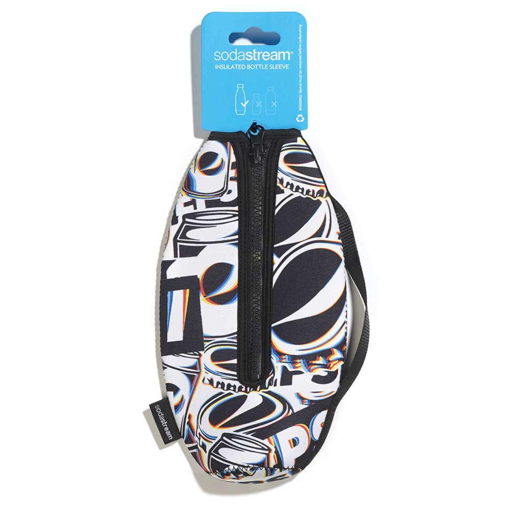 Limitovaná edice neoprenového obalu Sodastream v netradičním designu Pepsi Max. Obal je doplněný praktickým poutkem pro snadné nošení s sebou. Tento design je jedním z 5 unikátních designů, které jsou nyní dostupné. Nové neoprenové návleky jsou navržené pro 1litrové lahve SodaStream Fuse. Neoprenový materiál, ze kterého je obal vyrobený udrží váš nápoj déle studený, nebo teplý. Jedná se o velmi elegantní doplněk, pro vaší SodaStream lahev.
