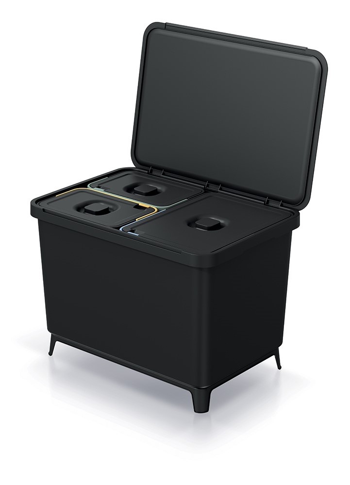 Šetřete naši planetu. Odpadkový koš Prosperplast SYSTEMA vám usnadní třídění odpadu. Obsahuje totiž 3 nádoby s odlišným barevným označením – žlutá na plast, modrá na papír a zelená na sklo. Záleží ovšem na vás, jestli se barev budete držet. Nádoby mají i různé objemy. Konkrétně 2 nádoby mají každá 10 litrů, a 1 nádoba 23 litrů. Díky rozměrným vnitřním boxům vzniká dostatek místa pro veškeré odpadky. Jakmile koše naplníte, snadno jejich obsah vynesete do popelnice s pomocí plastového ucha pro lepší držení.