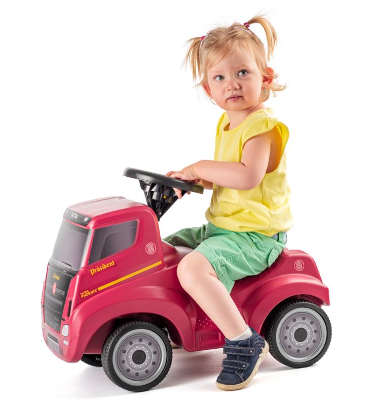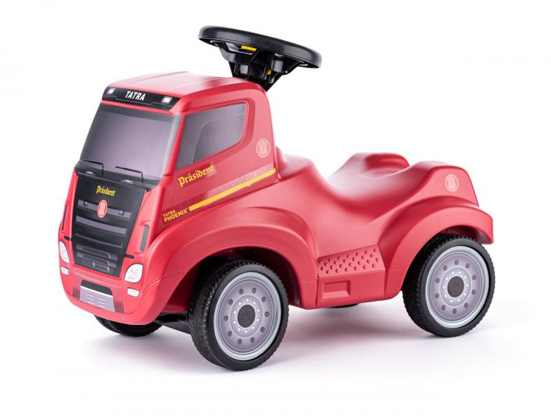 LIMITOVANÁ SÉRIE – Odstrkovadlo TATRA Phoenix President. Robustní a stabilní tělo odstrkovadla je vyrobené ve špičkové kvalitě z organického plastu. Odstrkovadlo je snadno ovladatelné a pohodlně řiditelné díky tichým pneumatikám, které mají vlastnosti jako guma – nedělají hluk a nezanechávají škrábance na podlaze. Na volantu je integrovaný jednoduchý klakson. Ergonomický design je vhodný i pro větší děti, které mohou díky vybrané části v sedadle jezdit v kleče. Součástí odstrkovadla je očko pro připojení přívěsu. Vhodné pro děti od 1,5 roku do 4 let (minimální výška dítěte 70 cm). Červené provedení je vhodné pro dívky i chlapce. Na odstrkovadle lze jezdit ve vnitřních i venkovních prostorách. Vyrobeno v Německu.