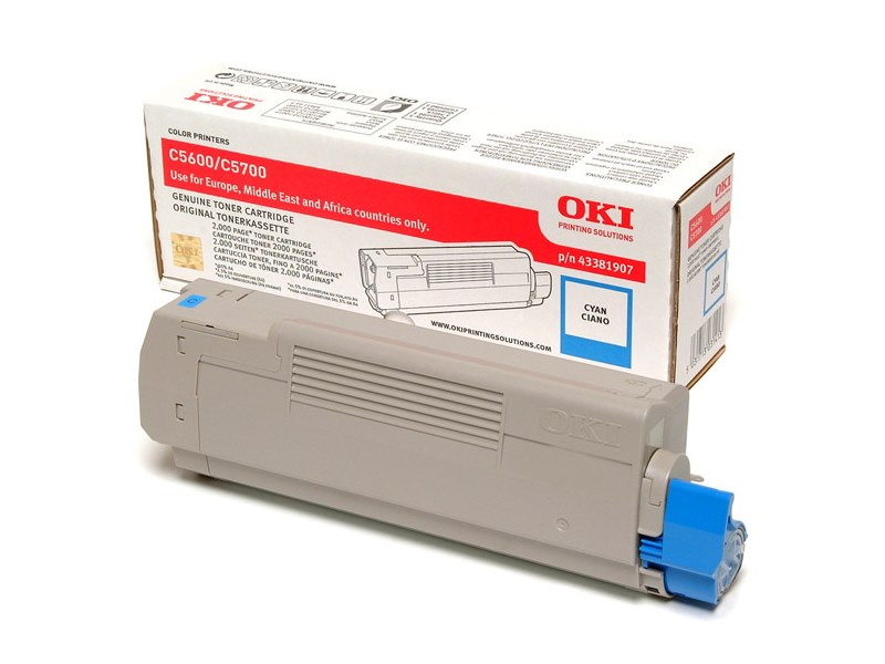 Azurový toner. toner pro každou barvu. Speciálně pro použití v tiskárnách OKI. Vysoká rychlost, přímý průchod. Kapacita: až 2000 stran A4 při 5% pokrytí. Kompatibilní s OKI C5600, C5700.
