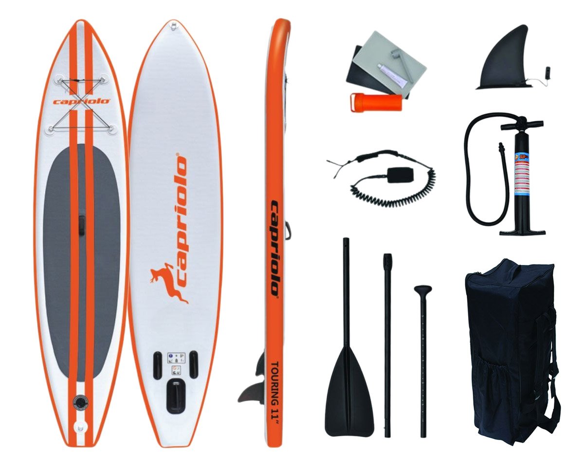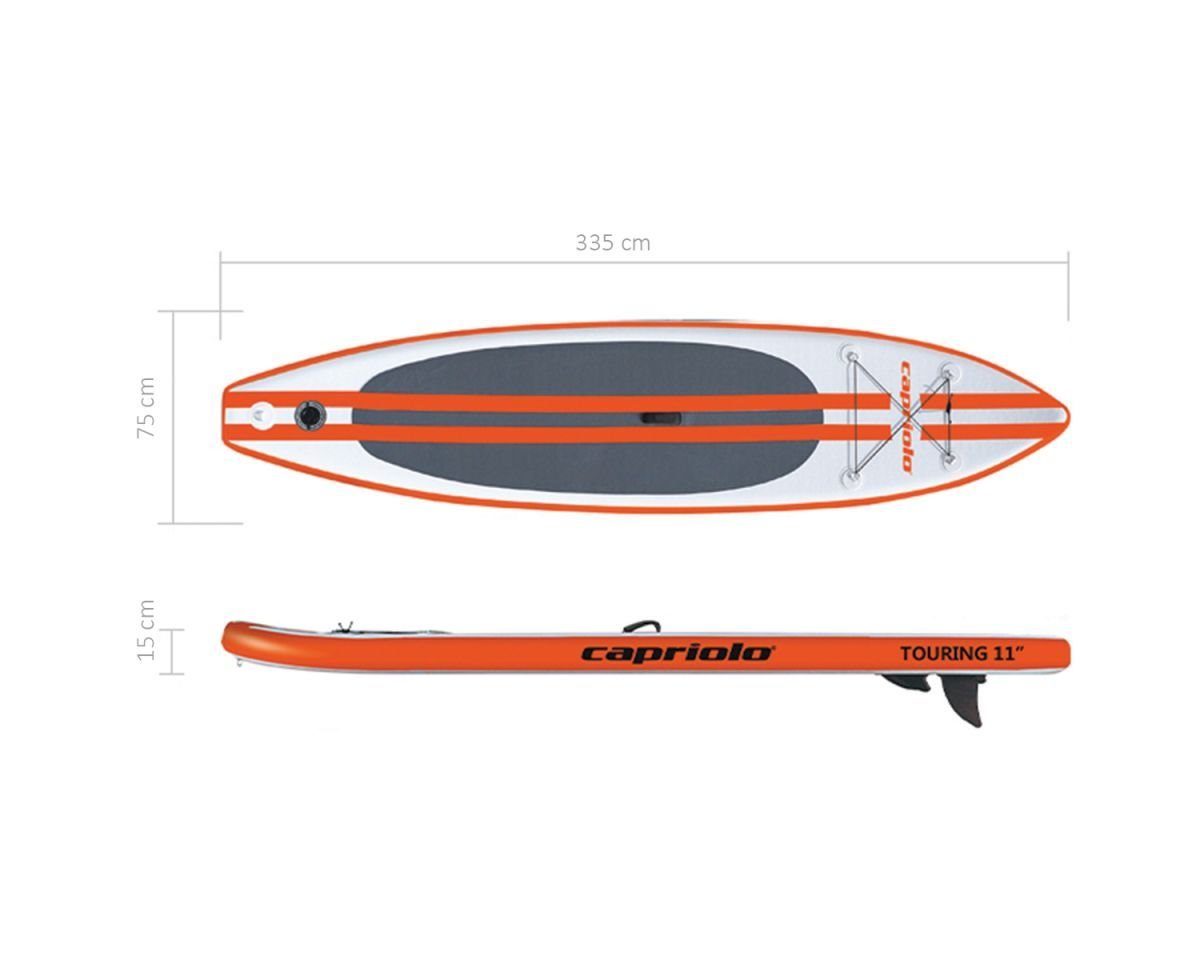 Nafukovací paddleboard Capriolo Touring s nosností až 150 kg je ideálním řešením pro uživatele všech úrovní, od začátečníků až po pokročilé, takže na něm může jezdit téměř každý zcela bez omezení. Všechny jezdce jistě potěší vysoká stabilita prkna a také jeho snadné použití, přenášení i údržba, která nezabere příliš mnoho času a ani námahy. Design desky má kompletní potisk po celé ploše, který rapidně zlepšuje viditelnost prkna v jakémkoliv prostředí, což výrazně snižuje případné riziko ztráty paddleboardu po vašem pádu do vody. Deska je poté vyrobena z vysoce kvalitních materiálů, které odolají silným nárazům vln, UV záření i sladké a slané vodě, takže s tímto prknem můžete vyrazit skutečně kamkoliv.