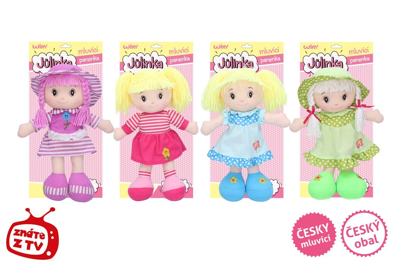 Mluvící látková panenka Jůlinka o výšce 40 cm vykouzlí úsměv na tváři každé malé holčičce, která miluje říkanky a rýmovačky. Po jemném stisknutí bříška začne předříkávat 1 ze 4 českých básniček pro děti – Dobré ráno, dobrý den, Nachystáme tělíčko, zacvičíme maličko, Jedna lžička za babičku, jedna lžička za tátu a Na nebi jsou světýlka, už tě čeká postýlka, díky čemuž se vaše maličká hravou formou naučí jejich přesné znění. Hračka existuje hned ve 4 různých barevných variantách, které jsou dodávány zcela náhodně.