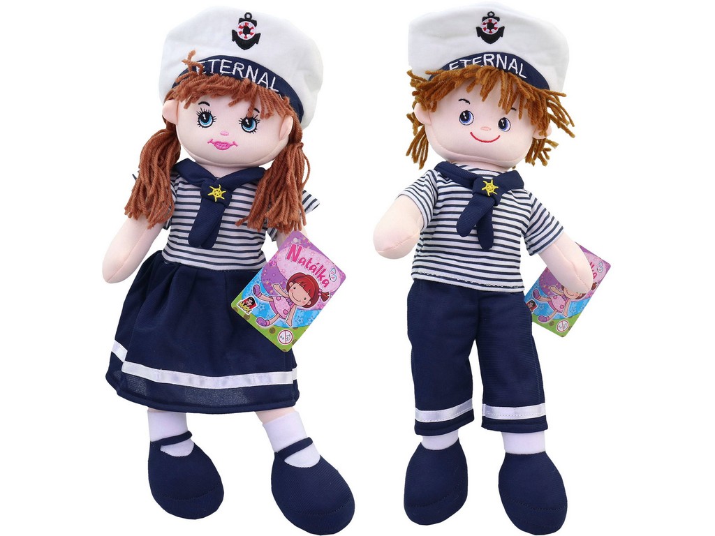 Krásná panenka textilní námořník od značky MaDe s výškou 40 cm udělá radost každé malé holčičce od 3 let. Látková panenka má námořnický obleček, vlásky z vlny a měkké tělíčko a hlavička, přímo vybízí k pomazlení, proto se stane nejdůvěrnější kamarádkou vaší maličké, která ji bude radostně vláčet všude s sebou.