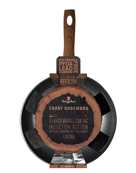 Univerzální pánev značky Berlingerhaus kolekce Ebony Line Rosewood o průměru 20 cm je osazená 3vrstvým mramorovým povrchem, který je charakteristický svou dokonalou nepřilnavostí, připravované potraviny se nepřipalují a díky tomu se pánev velmi jednoduše čistí. Zároveň je vhodná pro zdravé vaření s minimem tuku nebo oleje, v závislosti na použitých surovinách klidně i bez jediné kapky tuku. Vnitřní i vnější vrstva neobsahují žádné škodliviny, výsledné pokrmy tak neztrácí vařením svoje vitamíny.