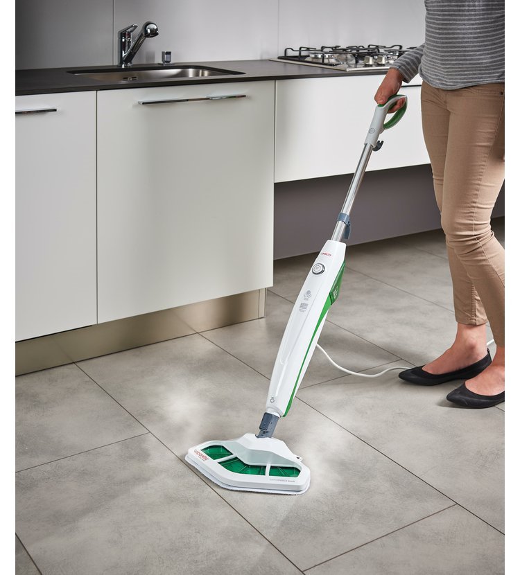 Vaporetto SV400 Hygiene je navržený pro všechny typy podlah – parkety, mramor, koberce, koupelnové dlaždice, vinylové (PVC) podlahy a terakotové nebo kamenné dlažby. Pára zničí až 99,99 % bakterií, virů a plísní. Oceníte speciální kartáč Vaporforce se širokou čistící plochou, vyjímatelnou nádobu na vodu a integrovaný filtr vodního kamene.