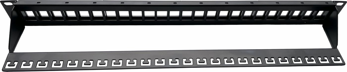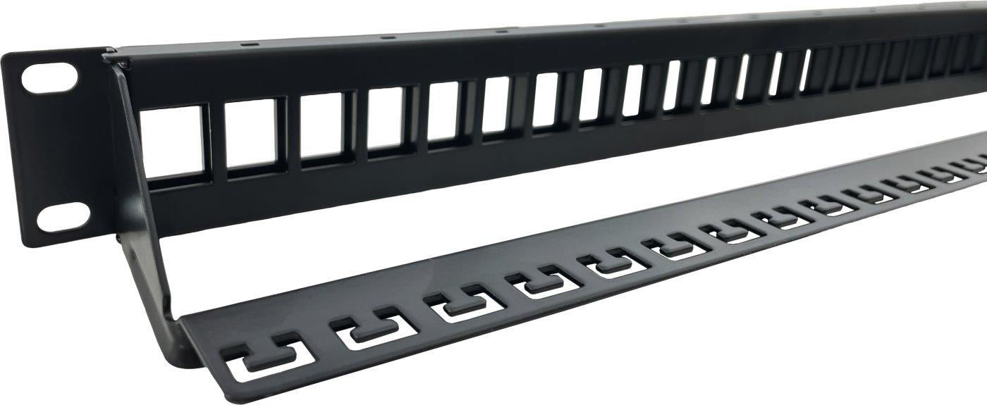 Díky černé barvě a výšce 1U je panel kompaktní. Jeho celková hloubka s lištou dosahuje hodnoty 90 mm, bez lišty pouhých 10 mm. Součástí balení je navíc racková sada pro přichycení panelu do datového rozvaděče.